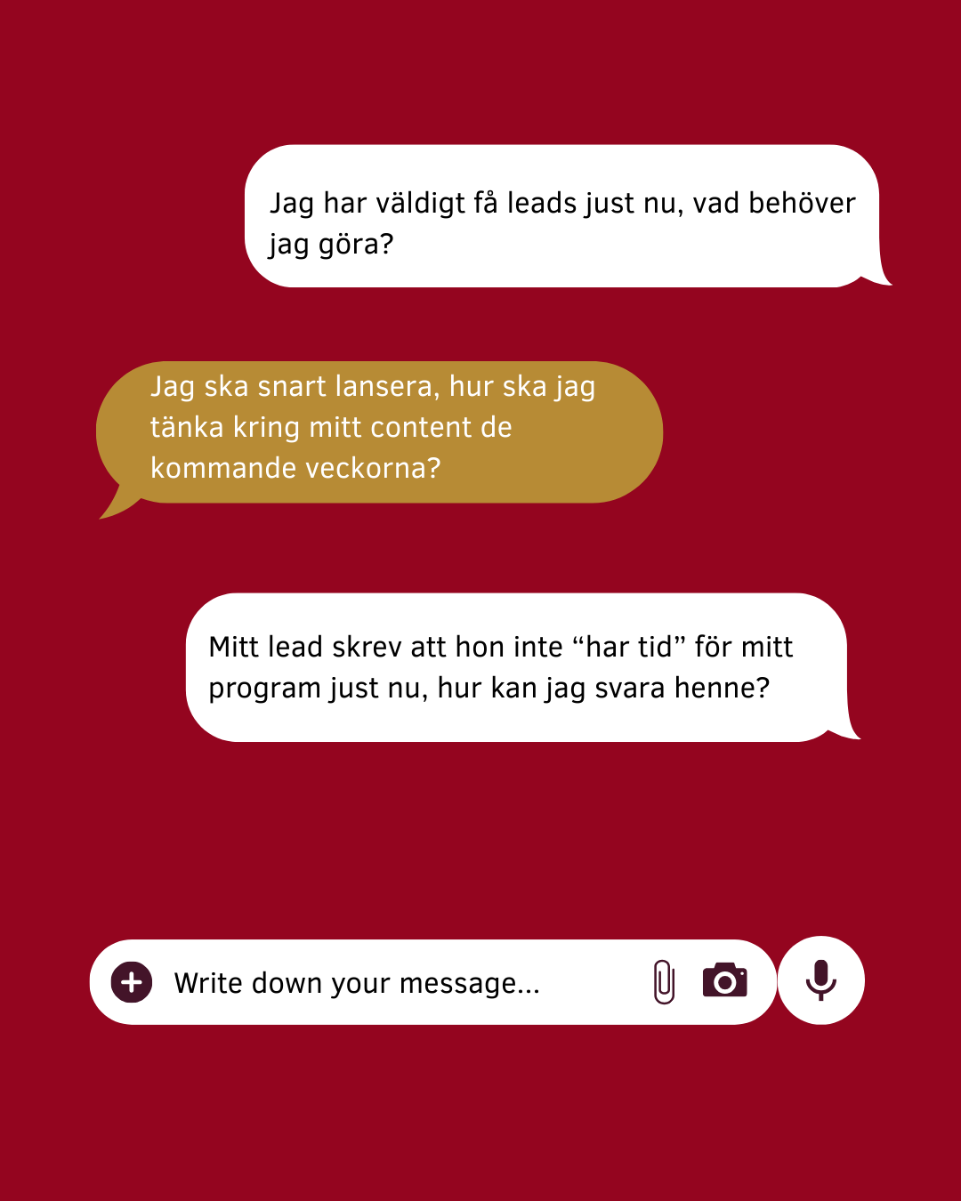 När leads hittar till din inkorg/DM har de ofta prisinvändningar, säger att de inte har “tid just nu” eller “kanske nästa år”. Vissa leads hör till och med av sig för att enbart fråga om pris.