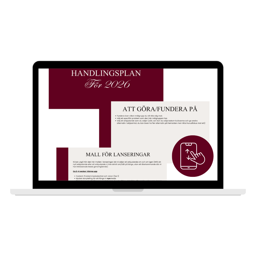 ✓ Är redo att bygga ditt varumärke långsiktigt, för du är trött på mallar som ska “passa för alla”. Du vill veta exakt hur DU ska sälja med dina ord och berättelser.