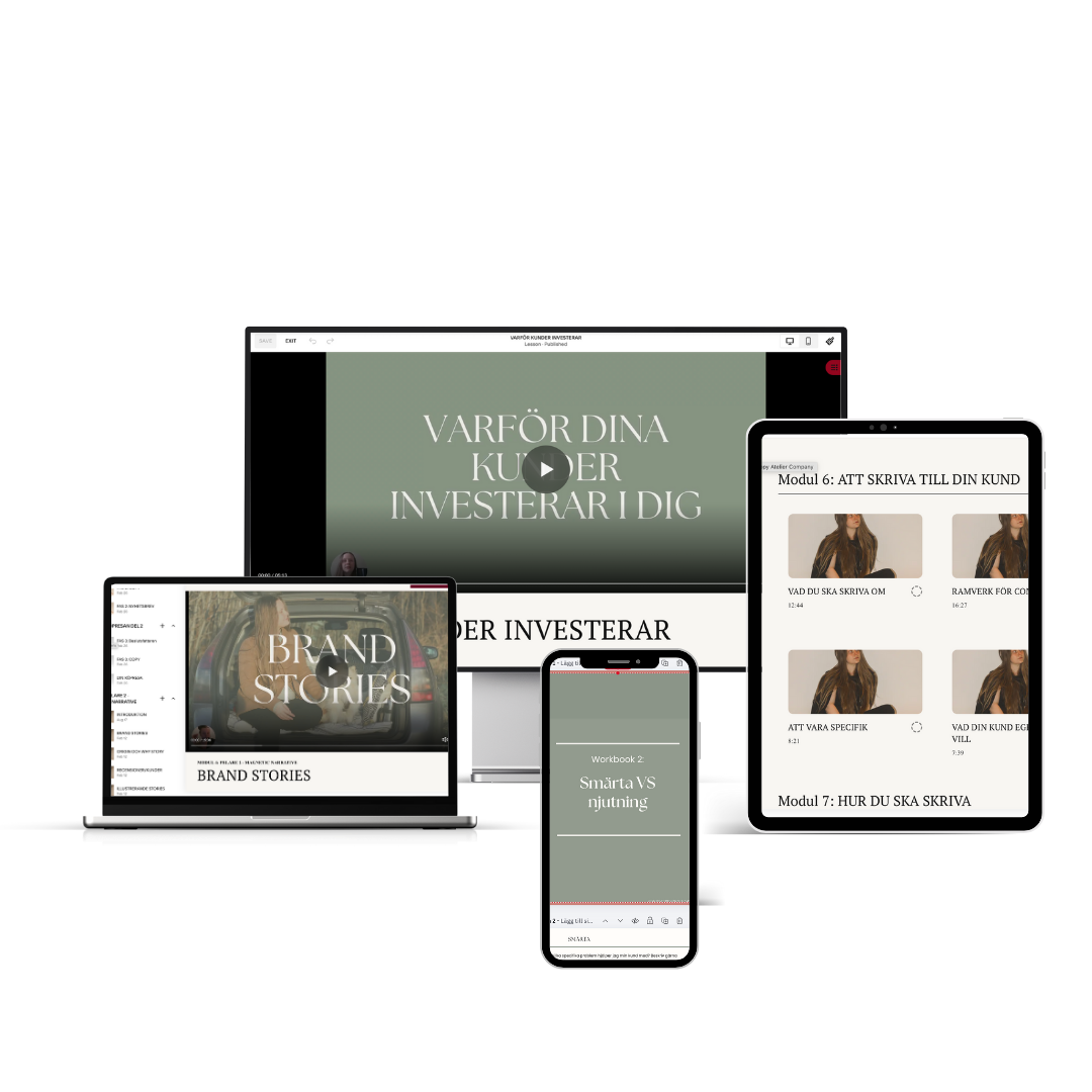 Tillgång till en kursportal med ALL info du behöver om storytelling och försäljning online